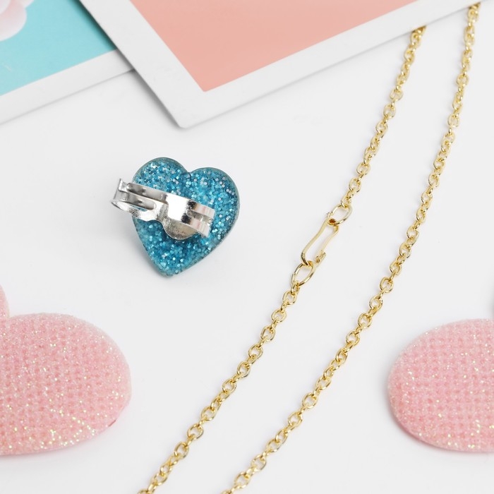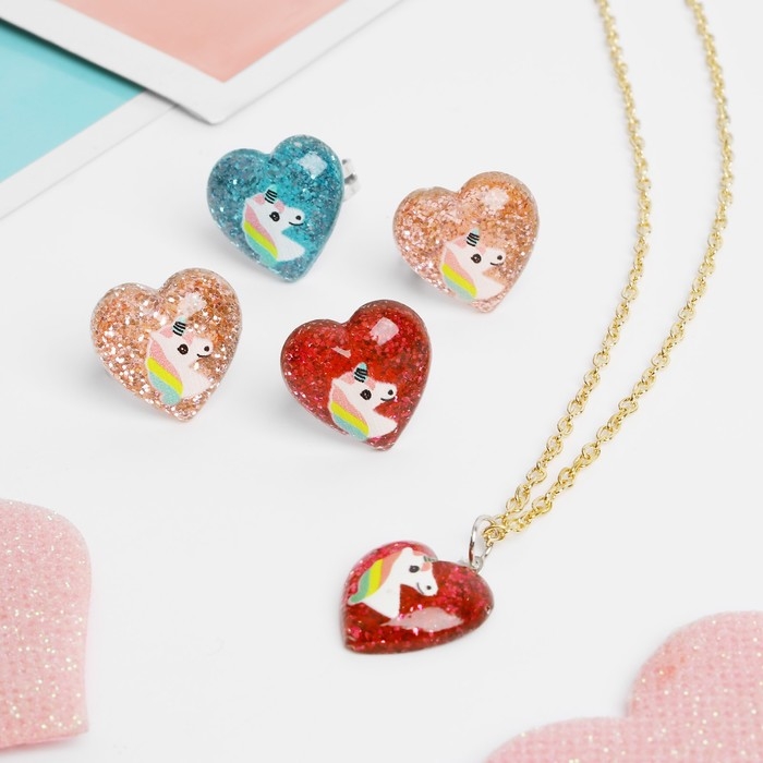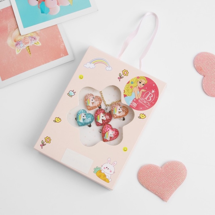 Набор детский «Выбражулька» 5 предметов: кулон, 4 кольца, единороги в сердечках, цвет МИКС