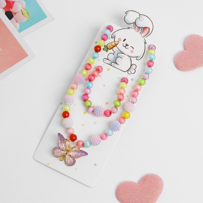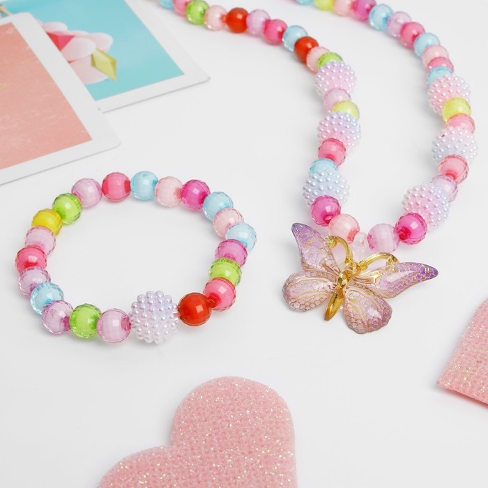 Набор детский «Выбражулька» 2 предмета: кулон, браслет, сахарная бабочка, цветной