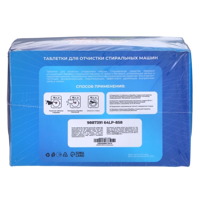 Средство для чистки стиральных машин, 30 таблеток по 15 г