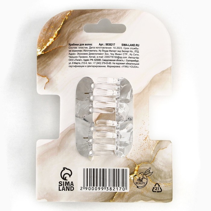 Краб для волос в форме бабочек «Ты совершенна», 2 шт., 4 х 3 х 2.5 см