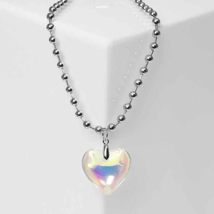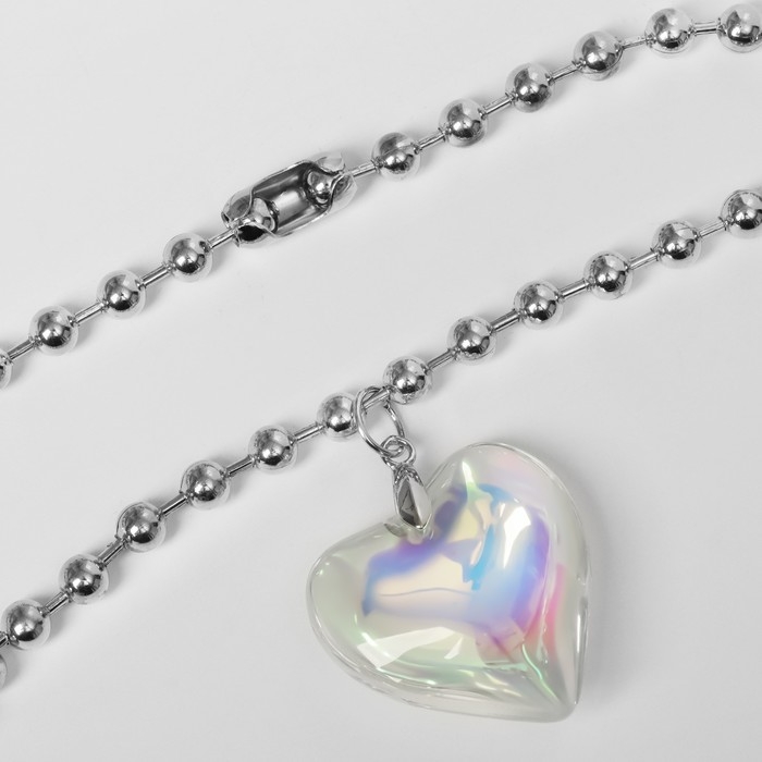 Кулон "Сердце" большое, цветное в серебре, 40 см