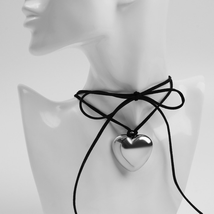 Чокер «Сердце» крупное, металлик, цвет чёрный в серебре, 60 см