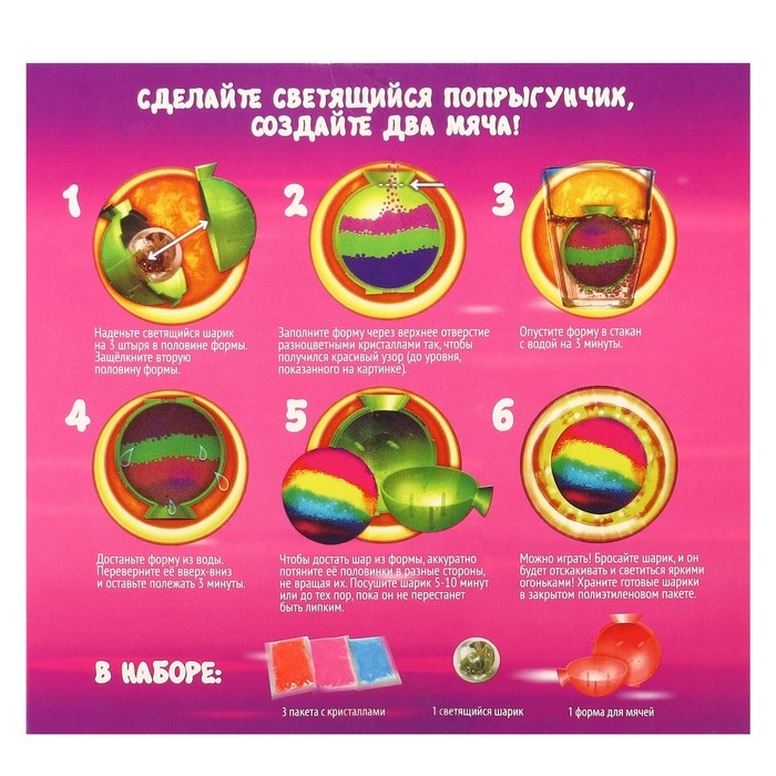 С набором для опытов «Сказочный патруль: Попрыгунчик» ребёнок проведёт химический эксперимент и узнает, как создать светящиеся мячики.