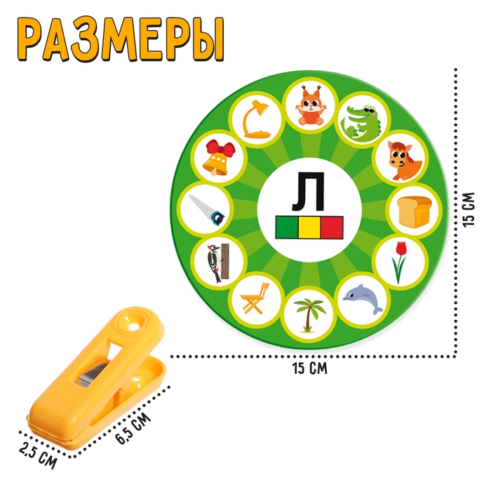 Развивающий набор «Звуковые круги» поможет малышам от 3 лет подготовиться к школе, расширить словарный запас и потренировать произношение сложных звуков: Р, Ш и Л.