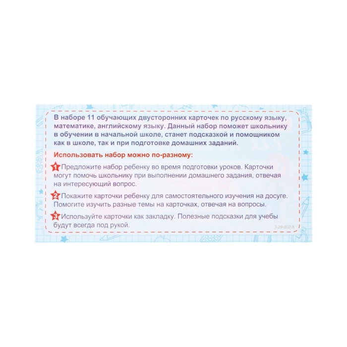 Набор карточек-закладок "Для начальной школы" 1-2 класс, 10 карточек, 20x10 см