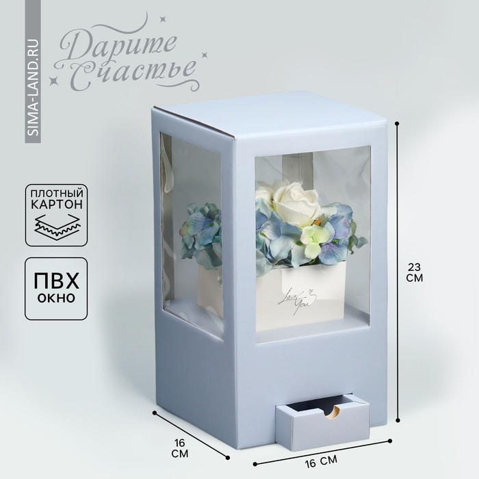 Коробка подарочная для цветов с вазой из МГК складная, упаковка, «Love», 16 х 23 х 16 см