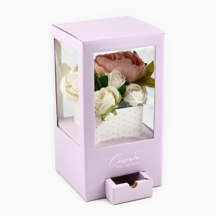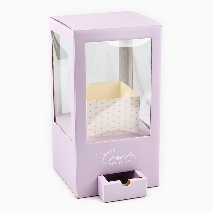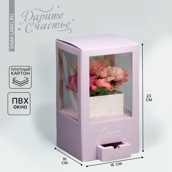 Коробка подарочная для цветов с вазой из МГК складная, упаковка, «Спасибо, что ты есть», 16 х 23 х 16 см