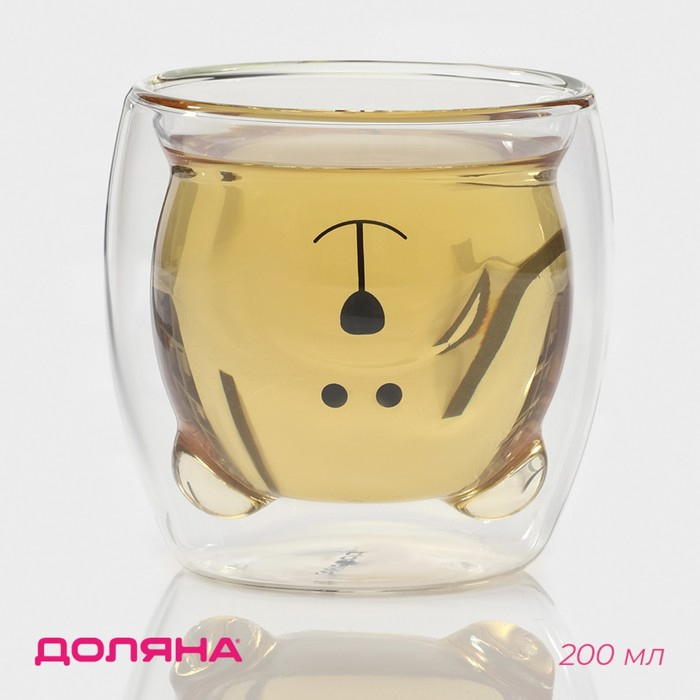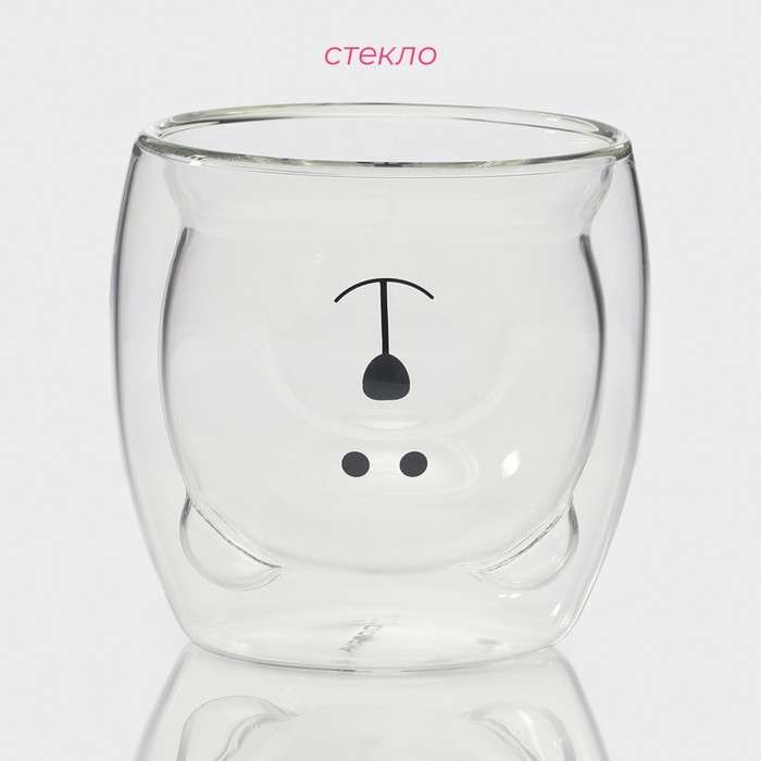 Стакан стеклянный с двойными стенками Доляна «Медведь», 200 мл, 9×9 см