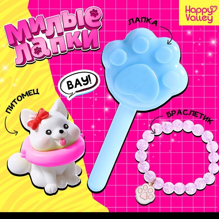Игрушка-сюрприз «Милые лапки» подарит радость и увлечет своим содержимым. Эта игрушка разработана специально для девочек и включает в себя интересные элементы, спрятанные внутри. Внутри пакета размером 13 см можно найти браслетик и милого питомца, которые обязательно понравятся ребенку.