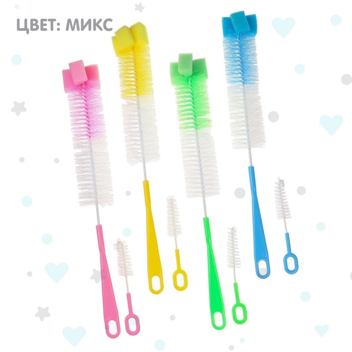 Набор ёршиков для бутылочек и сосок, цвета МИКС