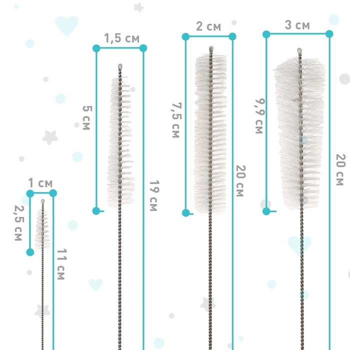Набор ёршиков для бутылочек и сосок, 4 шт., цвет МИКС, 20 см, Крошка Я