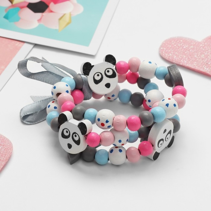 Браслет детский «Выбражулька» 3 нити, панда, цветной