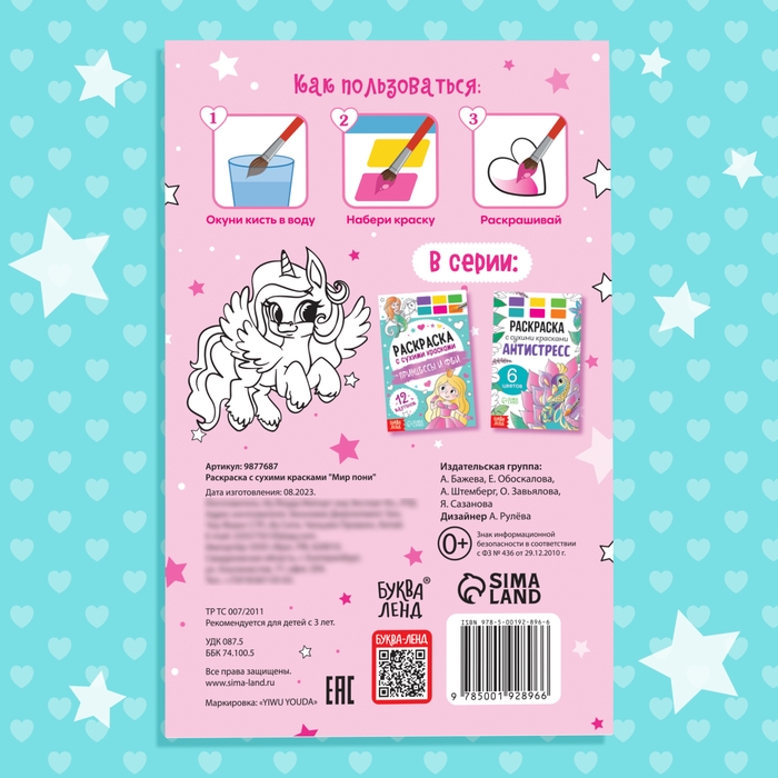 Раскраска акварельная «Мир пони», с кисточкой, 12 картинок, 3+
