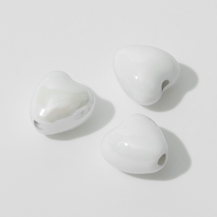 Бусина керамическая «Сердце» 12 мм, (набор 3 шт.), цвет белый