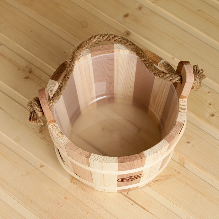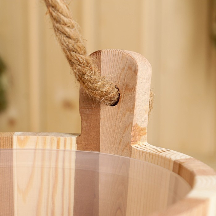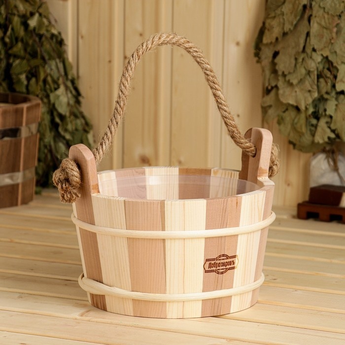 Ведро из липы, 7л, оцинкованная вставка, ручка-веревка, "Добропаровъ"