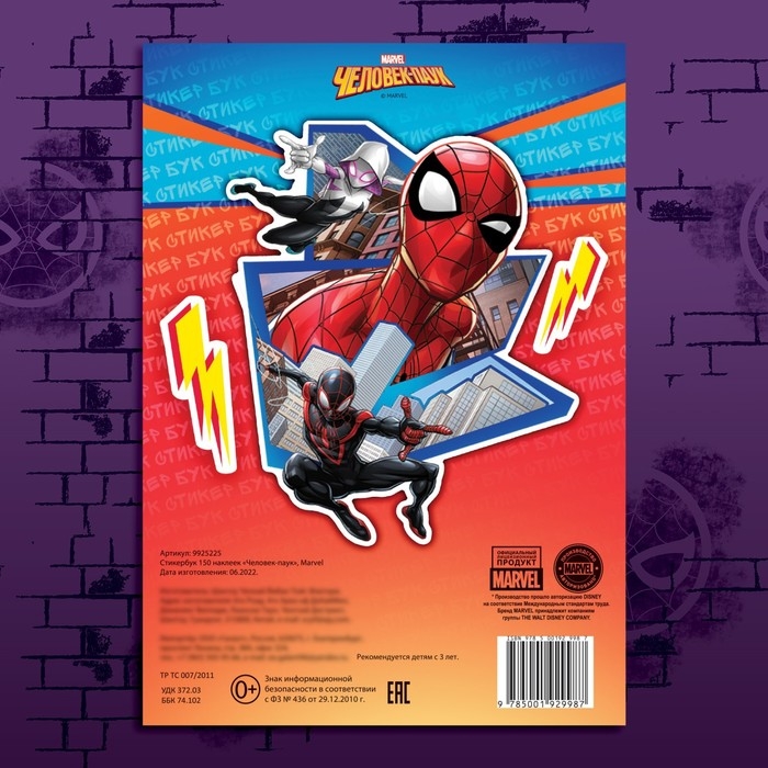 Стикербук 150 наклеек «Человек-паук», А5, 8 стр., Marvel