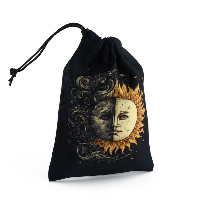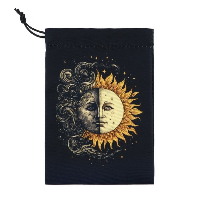 Мешочек для карт «Солнце и Луна» – стильный аксессуар для хранения карт и их защиты от внешних повреждений. Прочный материал и компактный размер позволяют поместить их в одном аксессуаре, а также использовать во время путешествий.