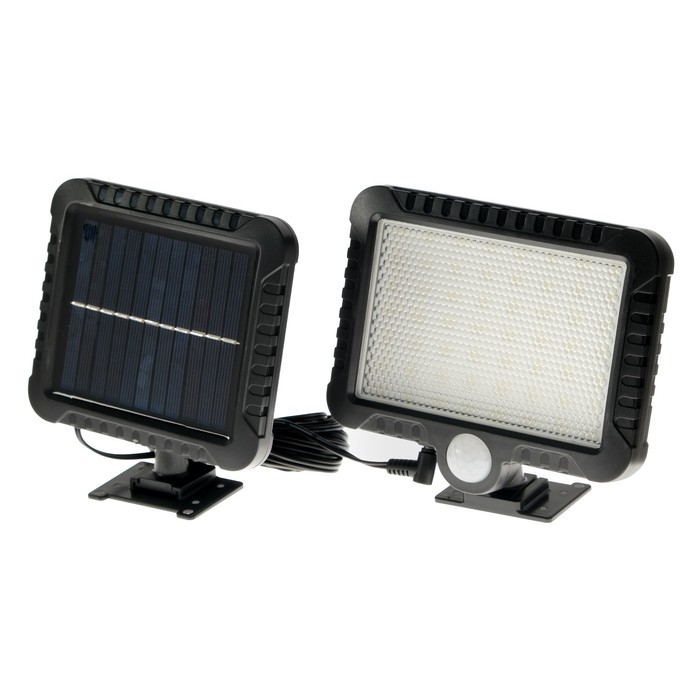 Прожектор на солнечной батарее с отдельной выносной солнечной панелью обеспечит автономное освещение как снаружи, так и внутри помещения. Светодиодный солнечный прожектор идеально подходит для освещения помещений, террас, беседок, садов, лестниц, въездных ворот, парковок и площадей. Излучает яркий приятный свет, простой в установке, работает от встроенного аккумулятора, который может подзаряжаться днем от солнечной батареи. Несмотря на свои небольшие размеры этот осветительный прибор способен излучать яркий поток света. Хорошо защищен от дождя и холода, но рекомендуем ставить под козырьком. Он также укрепит уровень безопасности вашего домовладения. Даже при непрерывном освещении он способен проработать от батареи всю ночь, 8 часов.