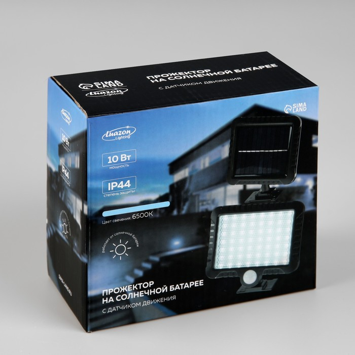 Светодиодный прожектор на солнечной батарее 10 Вт, выносная панель, 15 × 11 × 4 см, 6500К