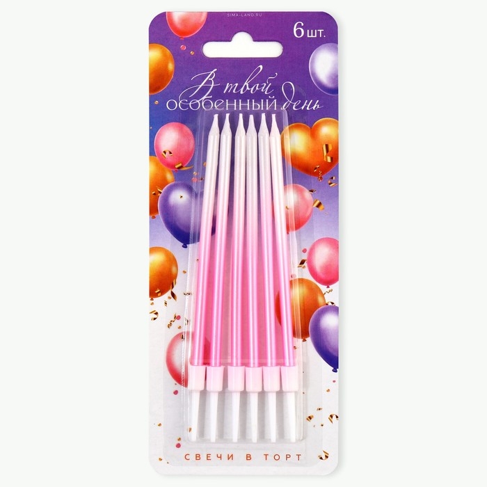 Свечи для торта «В твой особенный день», розовые, 6 шт., 13 х 0,4 см