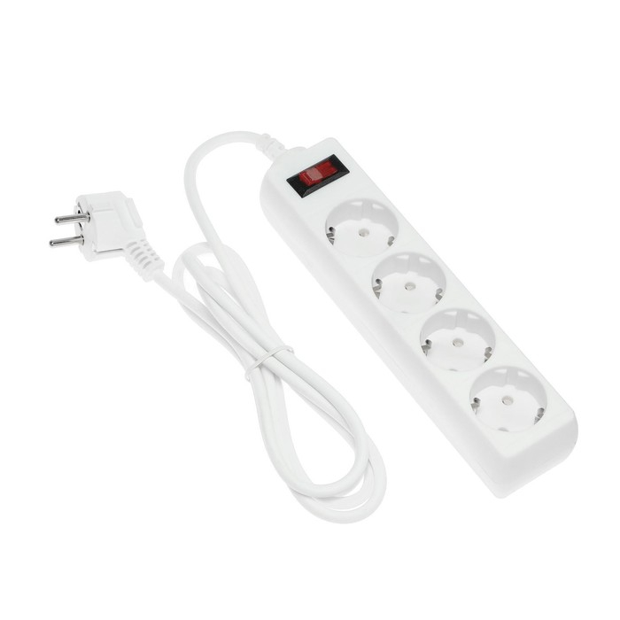 Сетевой фильтр Luazon Lighting, 4 розетки, 1.8 м, 2200 Вт, 3 х 0.75 мм2, 10 А, 220 В, белый