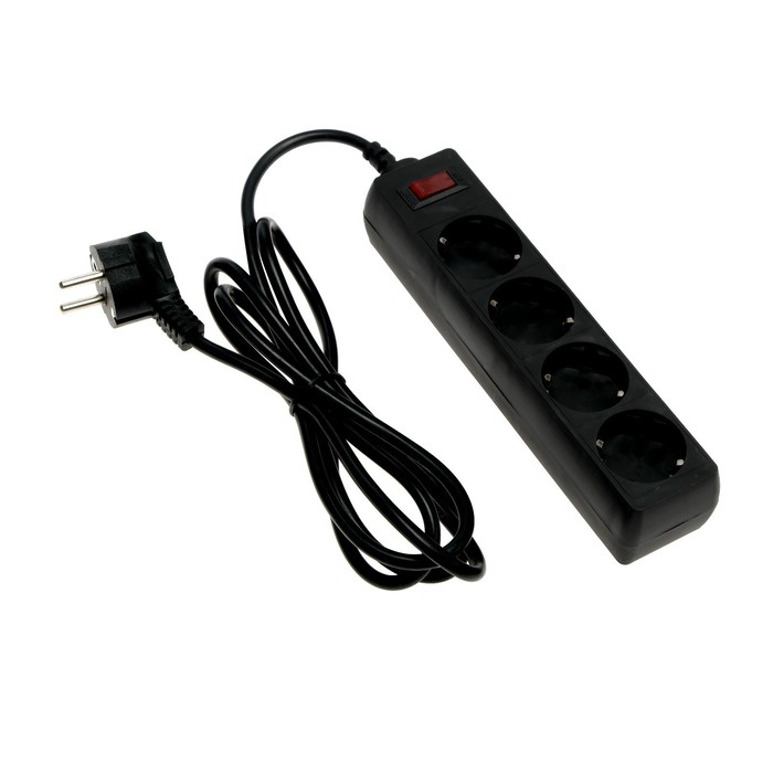 Сетевой фильтр Luazon Lighting, 4 розетки, 1.8 м, 2200 Вт, 3 х 0.75 мм2, 10 А, 220 В, черный