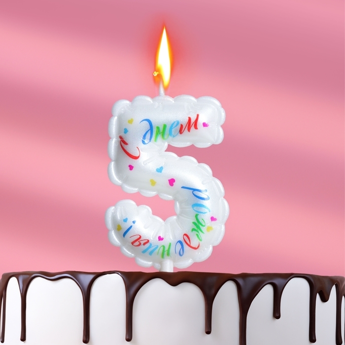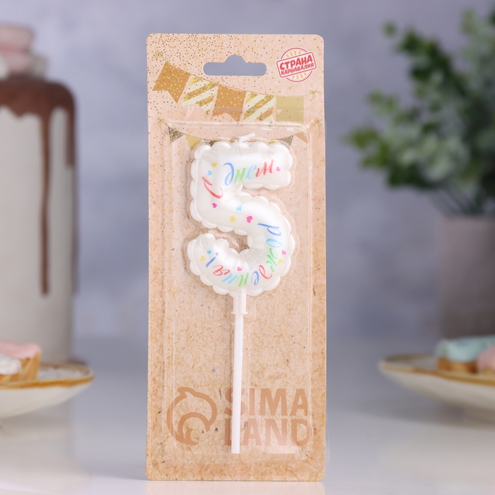 Свеча в торт "Воздушная", цифра 5, 5,5 см, белая