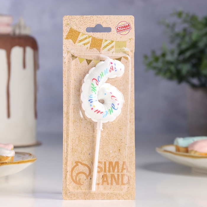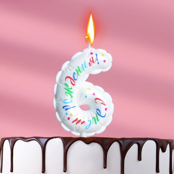 Свеча в торт "Воздушная", цифра 6, 5,5 см, белая