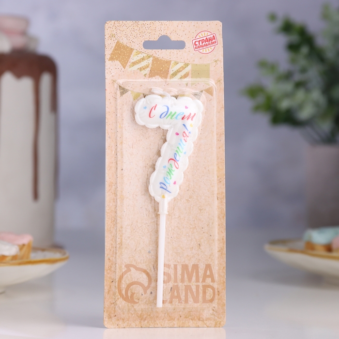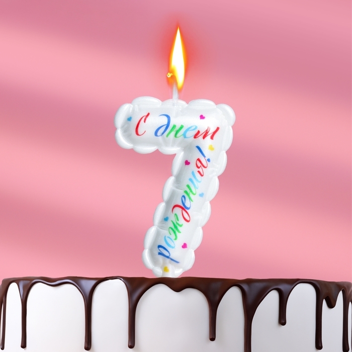 Свеча в торт "Воздушная", цифра 7, 5,5 см, белая