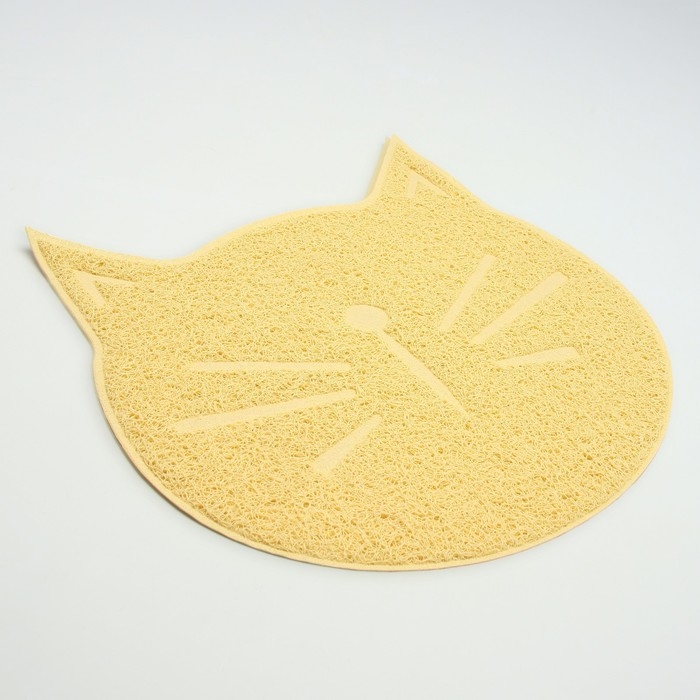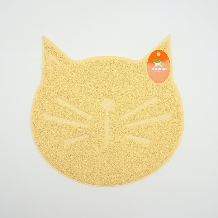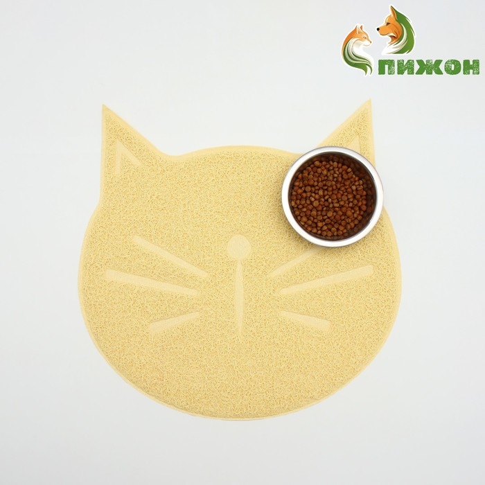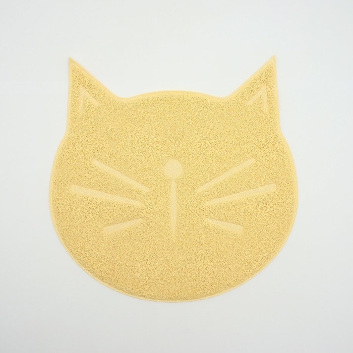 Дарите комфорт и безопасность своим питомцам с нашим удивительным ковриком под миску/туалет с антискользящим покрытием в форме милой кошачьей мордочки в бежевом цвете!