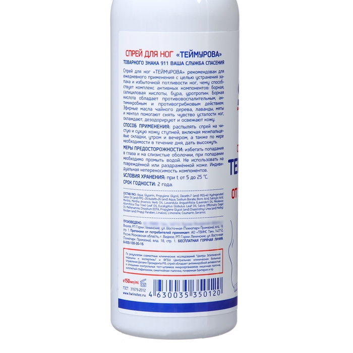 Спрей «911 Теймурова» для ног от запаха пота, 150 мл