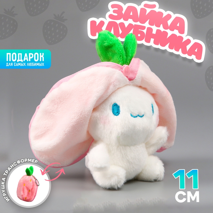 Мягкая игрушка «Зайка-клубника» на брелоке, 11 см