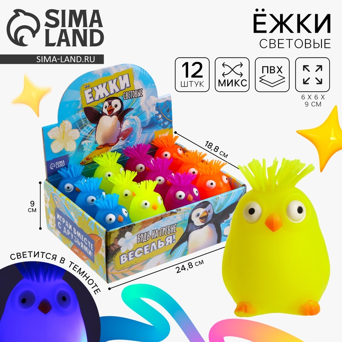 Мяч детский резиновый ёжка световой «Пингвинчик», цвета МИКС , в шоубоксе