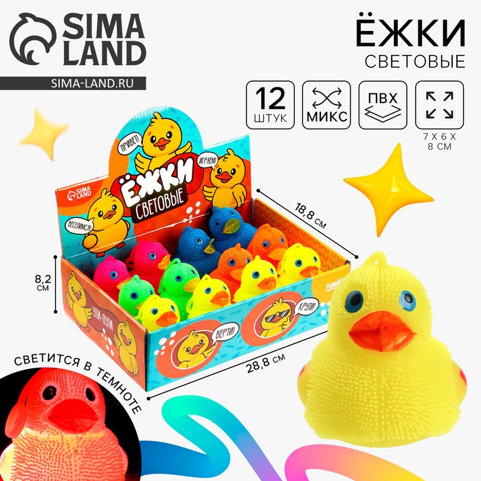 Мяч детский резиновый ёжка световой «Утята», цвета МИКС , в шоубоксе