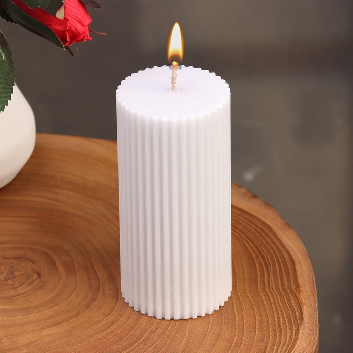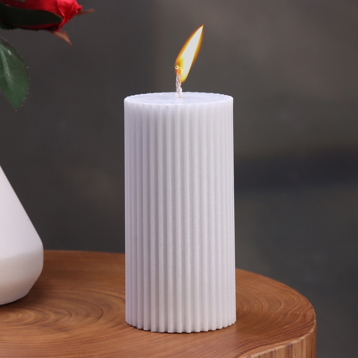 Свеча-цилиндр с гранями, 5х10 см, серая, 6 ч