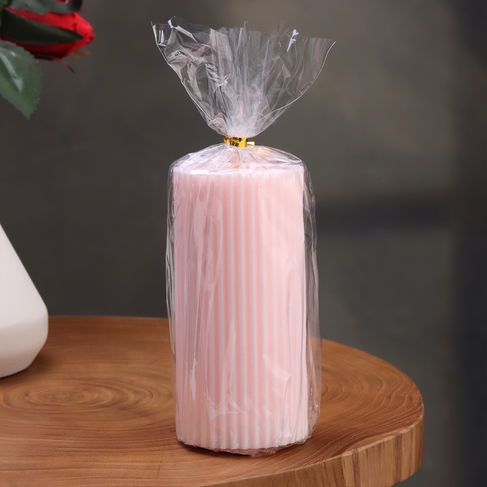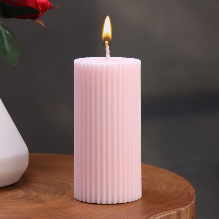 Свеча-цилиндр с гранями, 5х10 см, светло-розовая, 6 ч