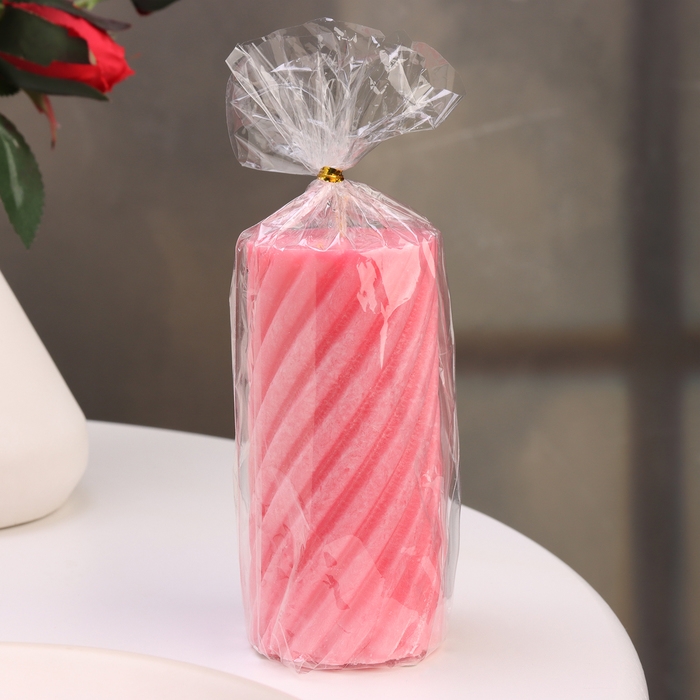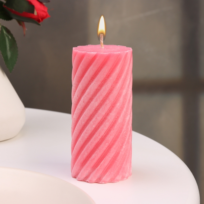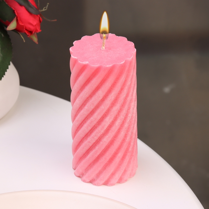 Свеча-цилиндр "Спираль", 5х10 см, розовая, 6 ч