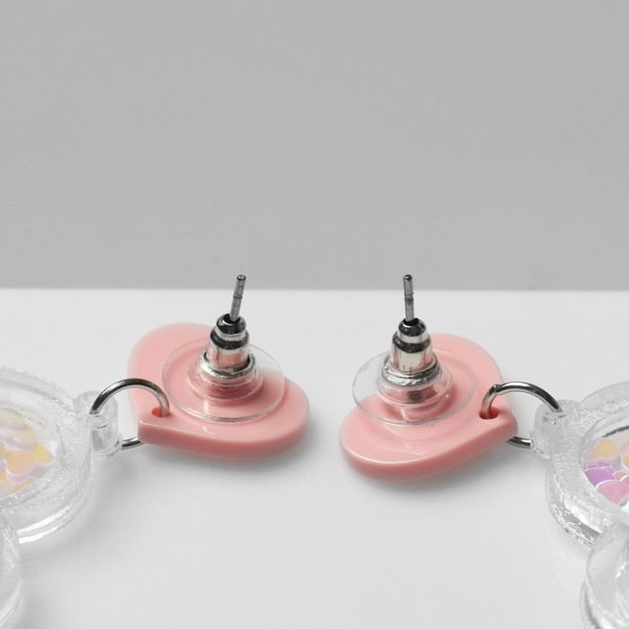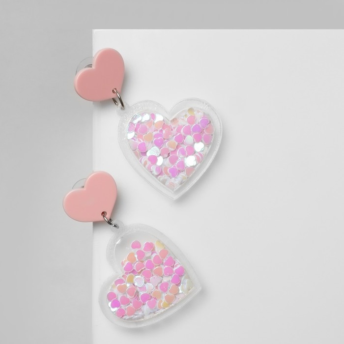 Серьги акрил «Сердечко» конфетти, цвет розовый