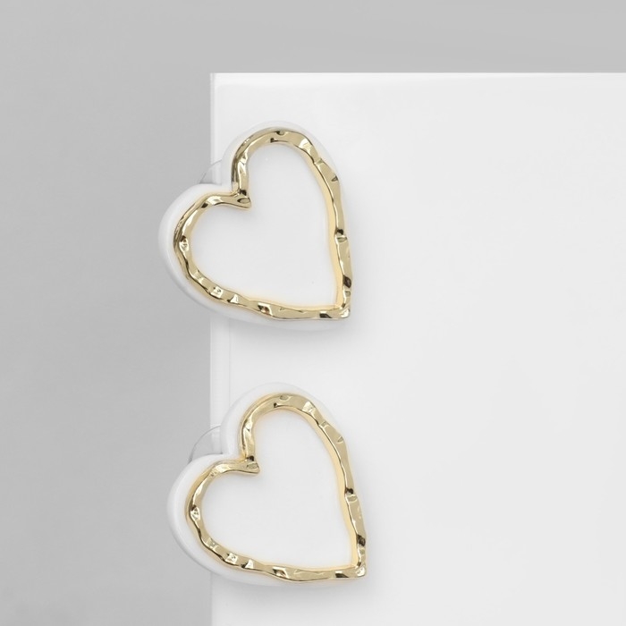 Серьги акрил «Сердце» влюблённость, цвет бело-золотой