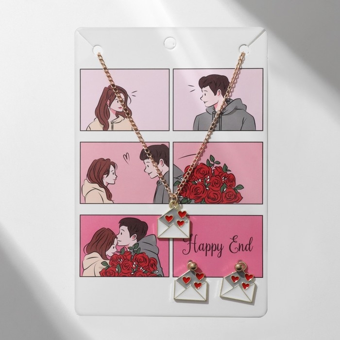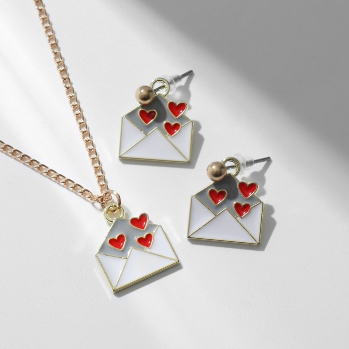 Гарнитура 2 предмета: серьги, кулон «Сердце» послание, цвет красно-белый в золоте, 42 см