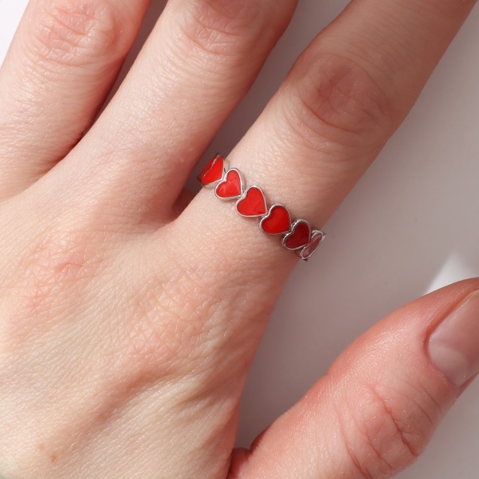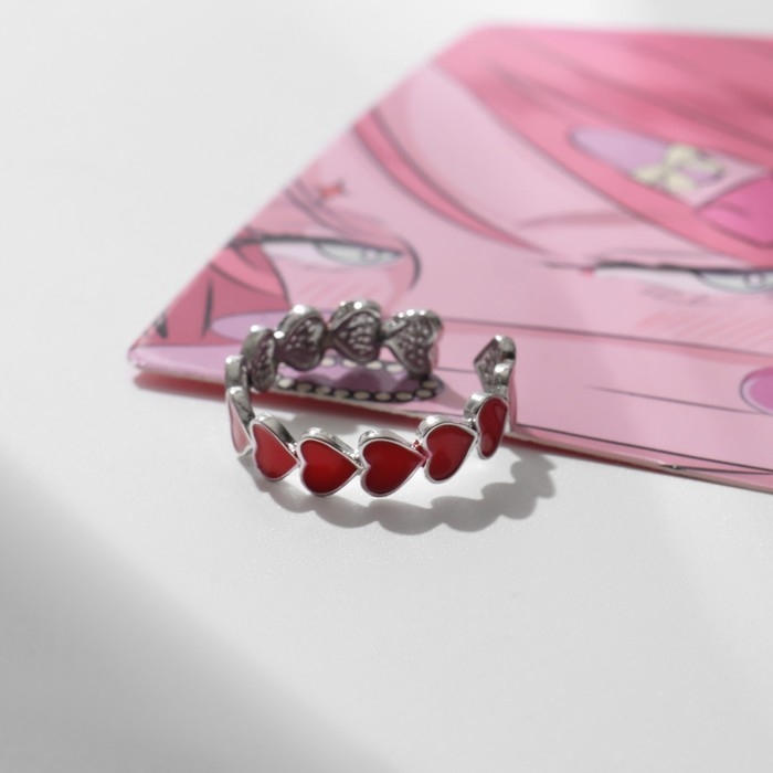 Кольцо «Сердце» долгие чувства, безразмерное, цвет красный в серебре