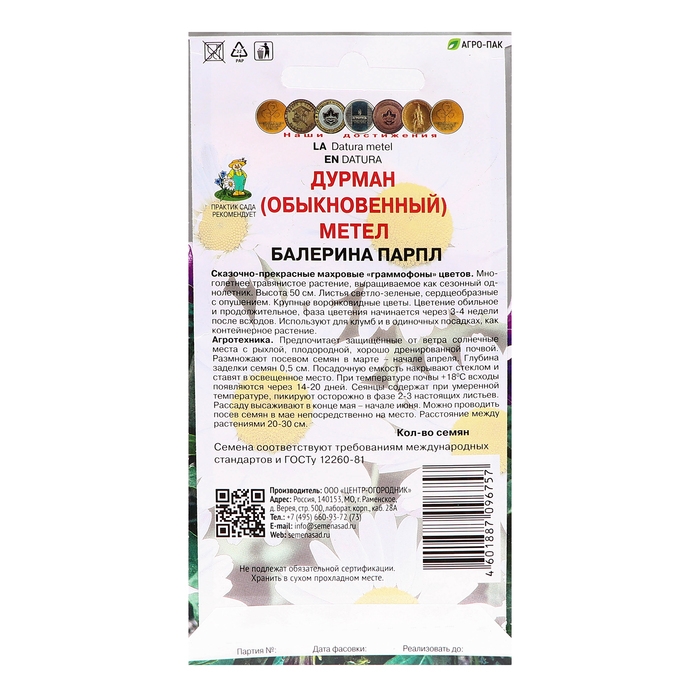 Семена цветов Дурман метел "Балерина парпл", 3шт.