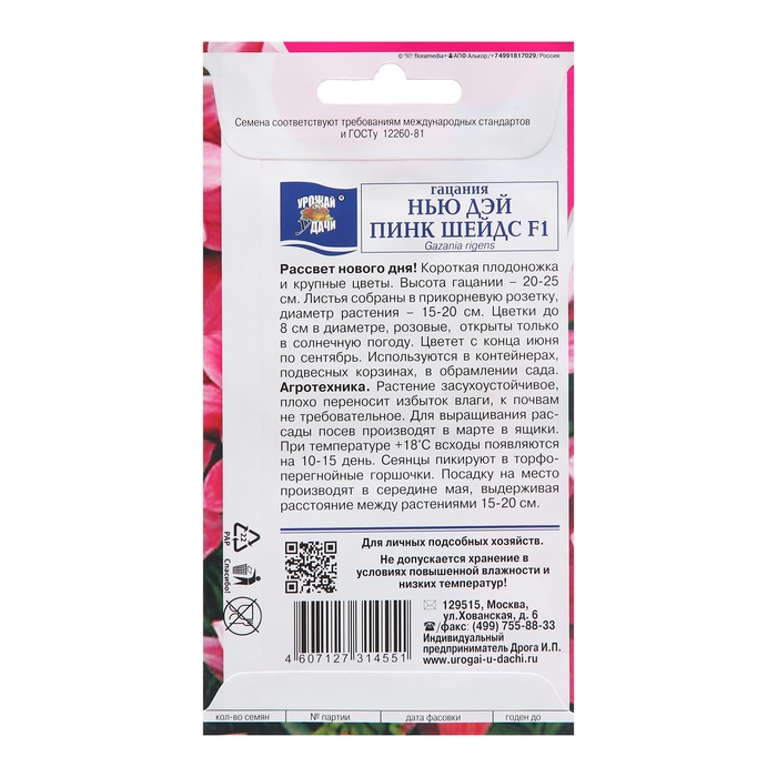 Элитные профессиональные семена цветов Гацания Нью Дей Пинк Шейдз F1. в мелкой профупаковке ""Eliteseeds"" для фермеров, для выращивания в промышленном объёме (на саженцы цветов для продажи оптом), для опытных и увлечённых садоводов