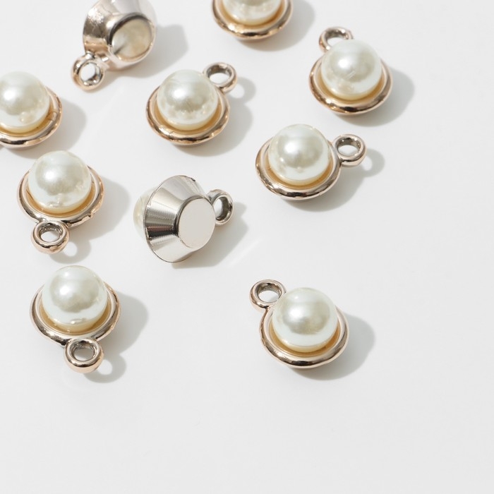 Концевик-подвеска «Жемчуг» шарик 1,8×1,4×0,8 см, (набор10 шт.), цвет белый в золоте
