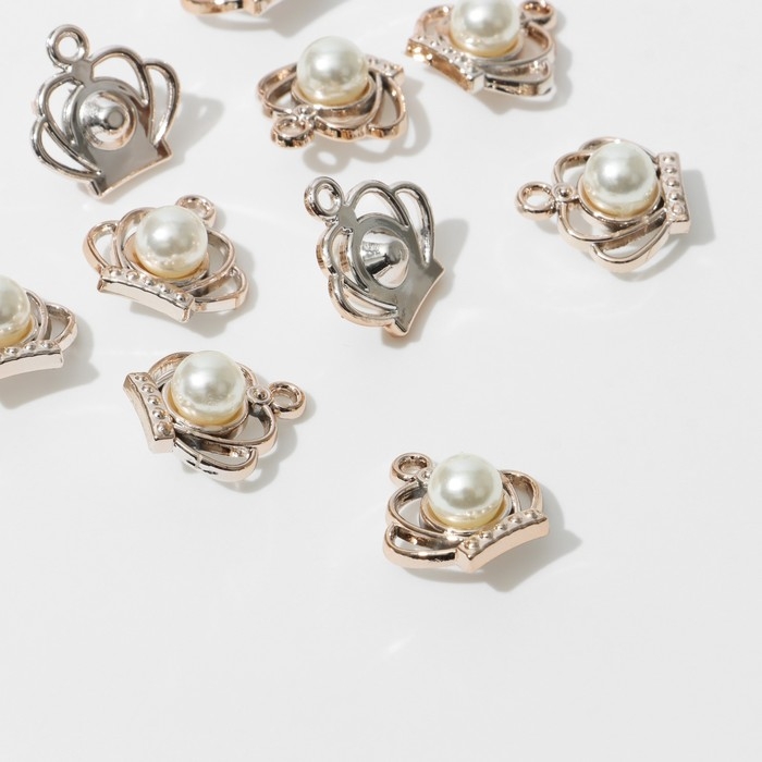 Подвеска «Жемчуг» корона 2×1,8×07 см, (набор 10 шт.), цвет белый в золоте