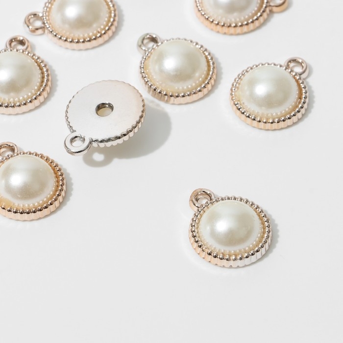 Подвеска «Жемчуг» круг 1,8×1,5×0,7 см, (набор 10 шт.), цвет белый в золоте