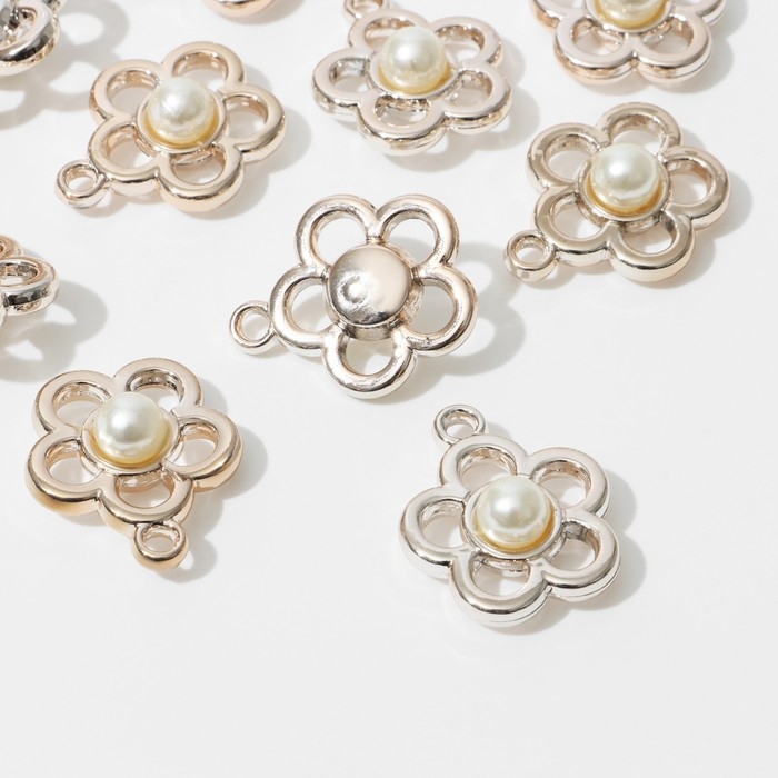 Подвеска «Жемчуг» цветок 2,8×2,3×0,7 см, (набор 10 шт.), цвет белый в золоте
