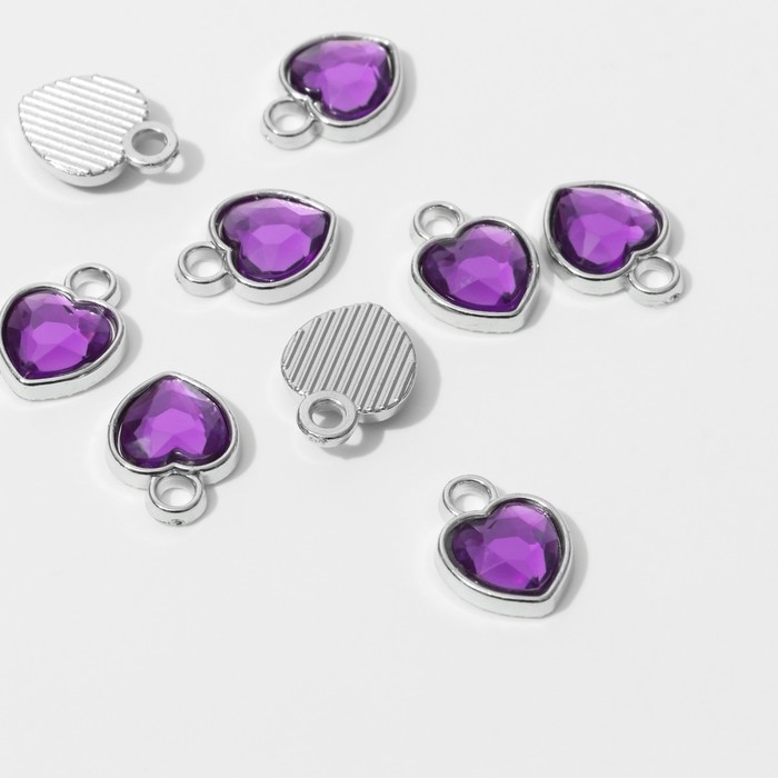 Концевик-подвеска «Сердечко» 1,7×1,3×0,2 см, (набор 10 шт.), цвет фиолетовый в серебре
