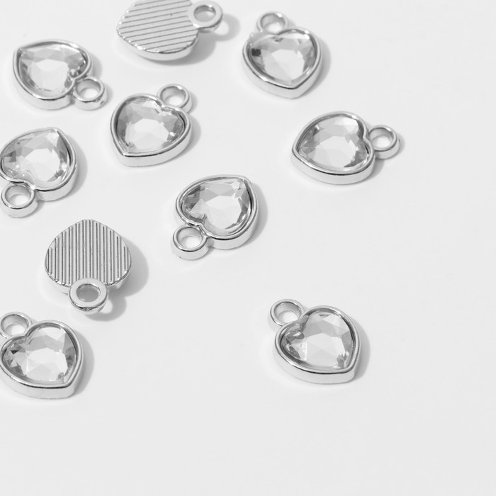 Концевик-подвеска «Сердечко» 1,7×1,3×0,2 см, (набор 10 шт.), цвет белый в серебре
