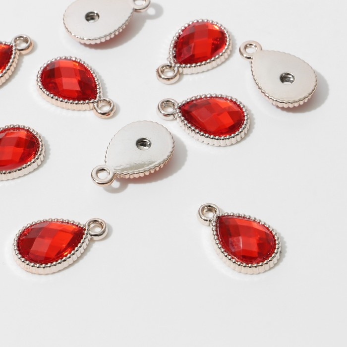 Подвеска «Капля» рифлёная 2,1×1,4×0,4 см,(набор 10 шт.), цвет красный в золоте